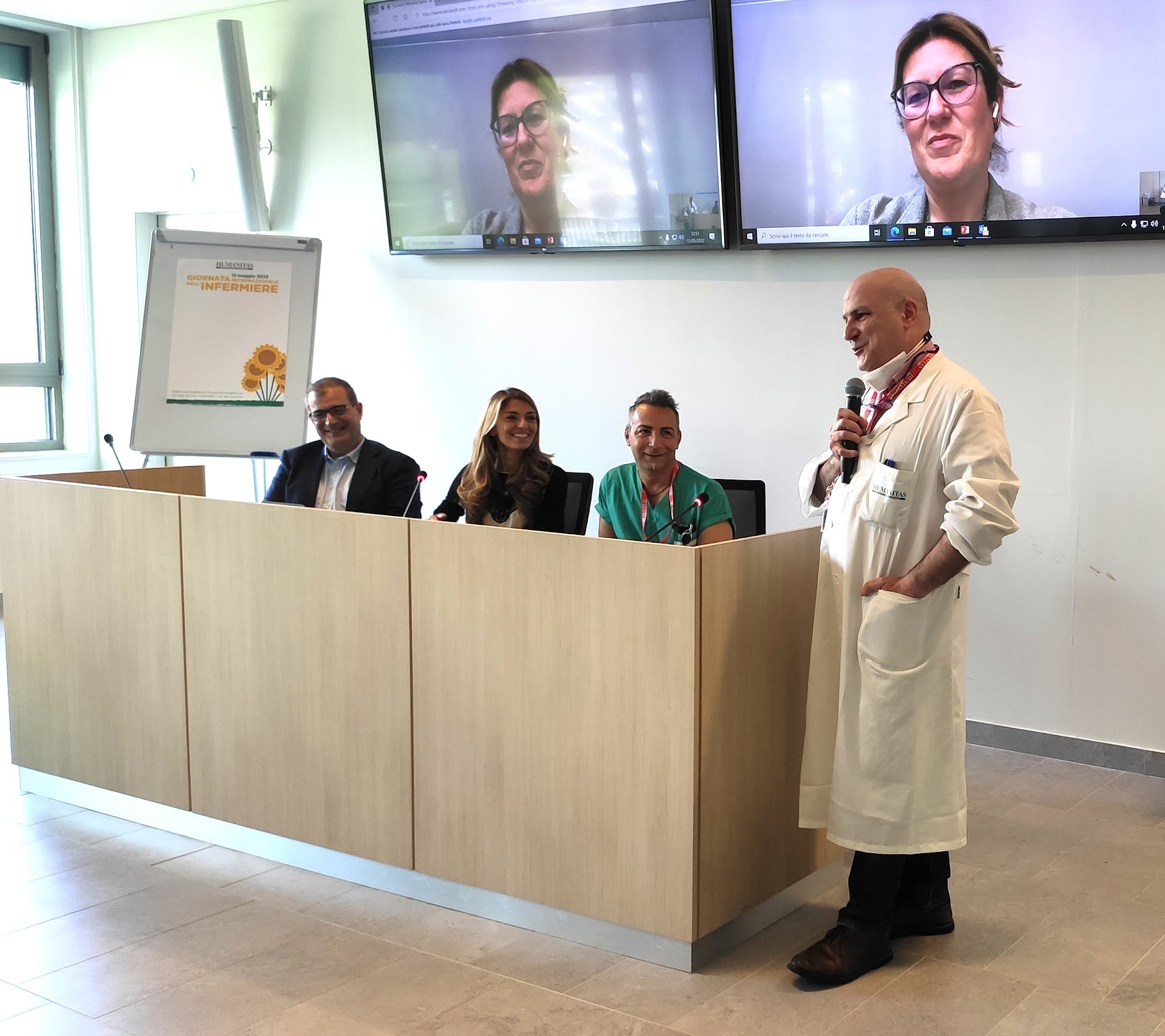 L’incontro, che ha avuto luogo nell’Auditorium dell’Istituto, ha visto la partecipazione da remoto della Prof.ssa Beatrice Mazzoleni, Direttore dei Corsi di Laurea in Infermieristica di Humanitas University e Segretario Nazionale Federazione Nazionale Ordine Professioni Infermieristiche (FNOPI), e della Dott.ssa Katia Morstabilini, Direttore Professioni Sanitarie Humanitas Gavazzeni e Humanitas Castelli. Entrambe hanno sottolineato l’importanza della formazione continua che ha lo scopo di valorizzare le competenze degli infermieri, affinché possano acquisire gli strumenti adatti per affrontare paure e incertezze”.