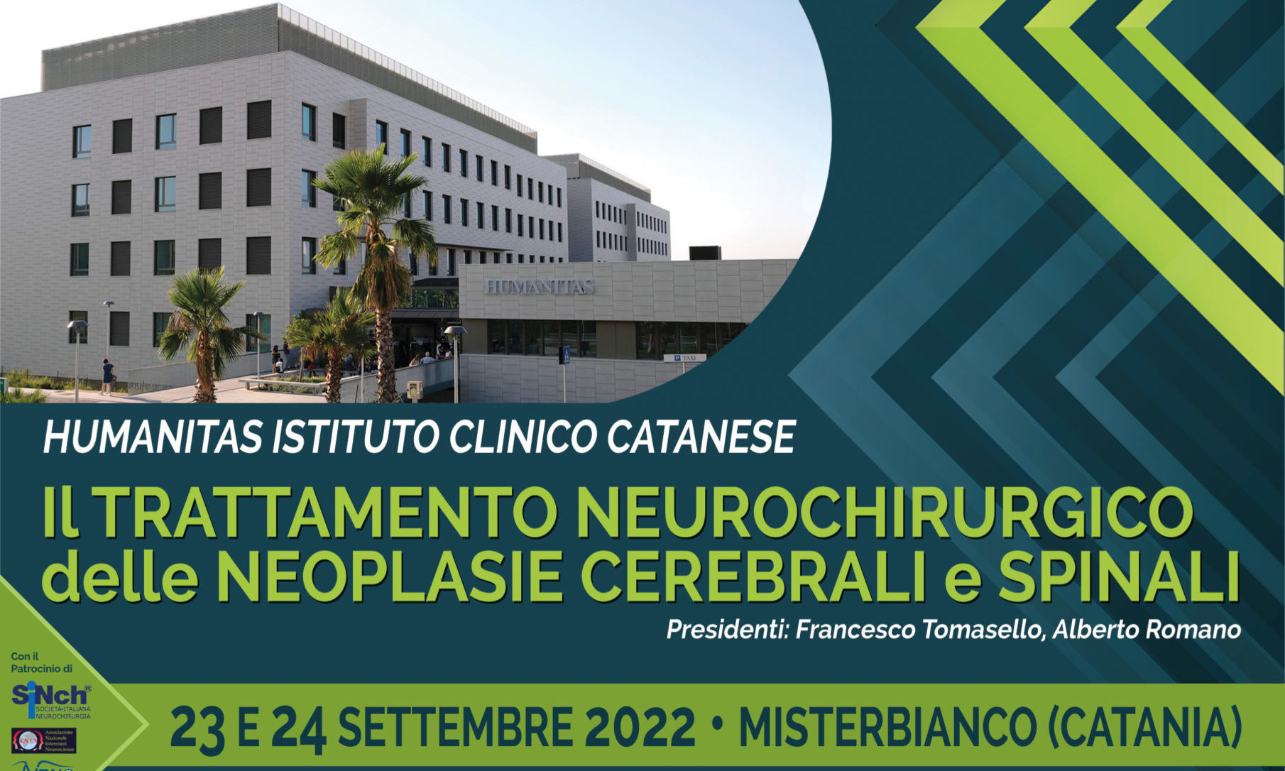 Il 23 e 24 settembre 2022 l’auditorium di Humanitas Istituto Clinico Catanese ospiterà il convegno “Il trattamento neurochirurgico delle neoplasie cerebrali e spinali”, organizzato dal Prof. Francesco Tomasello Senior Consultant di Neurochirurgia e Presidente Onorario della Federazione Mondiale di Neurochirurgia e dal dott. Alberto Romano Responsabile Unità Operativa di Neurochirurgia dello stesso Istituto Humanitas di Misterbianco (Catania).
