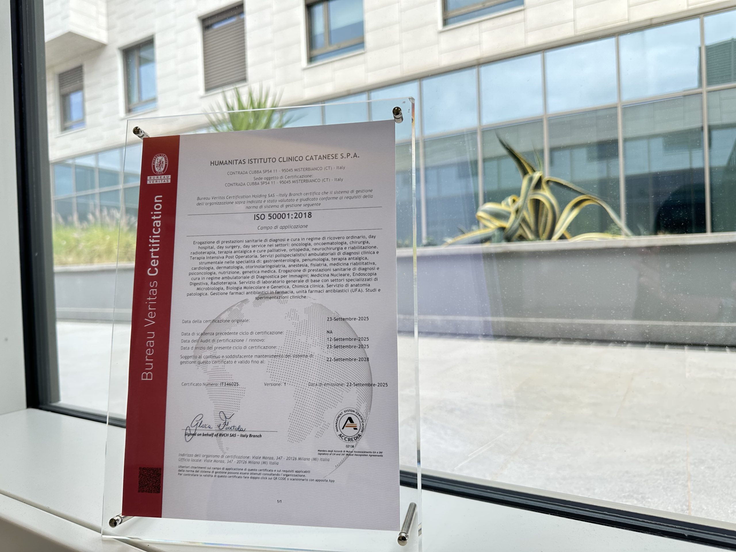L’ottenimento della ISO 50001 rappresenta un ulteriore passo avanti nella strategia di sostenibilità di Humanitas Istituto Clinico Catanese, a conferma di un impegno concreto e continuo verso la tutela dell’ambiente e il miglioramento dell’efficienza energetica.
